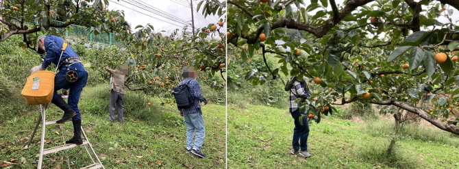 小田急線鶴川駅初来訪。そして柿狩りも初めて…いちごのように取っては食べの食べ放題ではないはず、ぶどうのようにちょっきん!と切って重さで〇〇円と想像。もぎ取りから終了まで40分と想定。駅から歩くこと15分。入口から山へ入り、柿の種類を教えていただいたり、味見をしたり、実際の柿の木までまた歩き…。時間が無い!すみません急いでいます!とせかすことになり、せっかく解説してくださったアグ里さんに申し訳ないことをしてしまった。ちなみに品種は